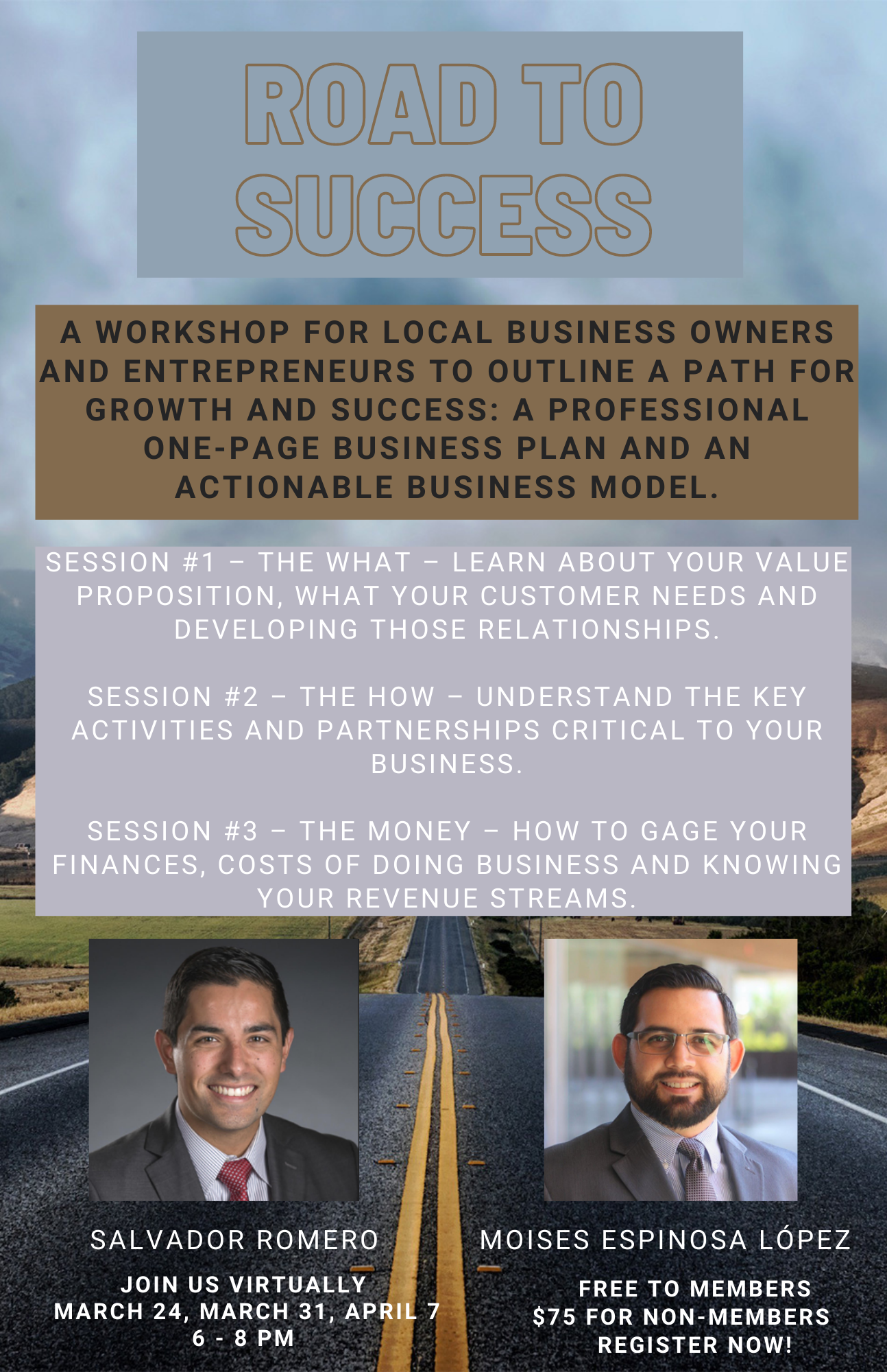 The Road to Success is a three-week course (free for members) which covers business fundamentals, and will provide you with a finished one-page business plan you can present to lenders, landlords or investors.